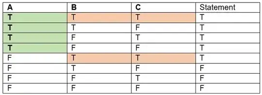 - If either of A and B is true, and also if C is true, then the statement is true.