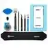 Setze ein fünftes Plektrum zwischen 8 mm und 10 mm tief, oder knapp über die Hälfte zwischen der Spitze und dem iFixit-Logo, in die obere linke Ecke ein.