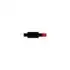Slide one arm of a pair of angled tweezers under the metal neck of the black antenna cable's connector head on the USB‑C board.