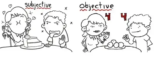 Another distinction that can be made is whether something is metaphysically or epistomologically subjective or objective. Metaphysically objective things are things we call can see. For example the apples. Things that exist in the real world independent of any one person. Metaphysically subjective things are that which only each person experiences and can verify against each other. Exactly how Joe experiences the taste of the cake is not something Sue can experience nor directly verify. This is usually referred to as qualia. This exists in the real world but only to a single person.