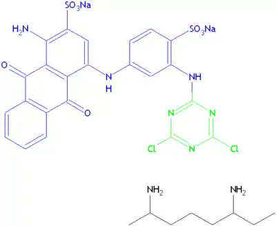 Many acid dyes are synthesised from chemical intermediates which form anthraquinone-like structures as their final state. Many blue dyes have this structure as their basic shape. The structure predominates in the levelling class of acid dye.