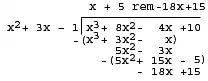 In core four you will be expected to divide polynomials of up to the fourth degree by either a linear or quadratic polynomial. This only works if the numerator is greater than the denominator. The resultant will always be in the form; where q(x)is the resulting polynomial and is the remainder.