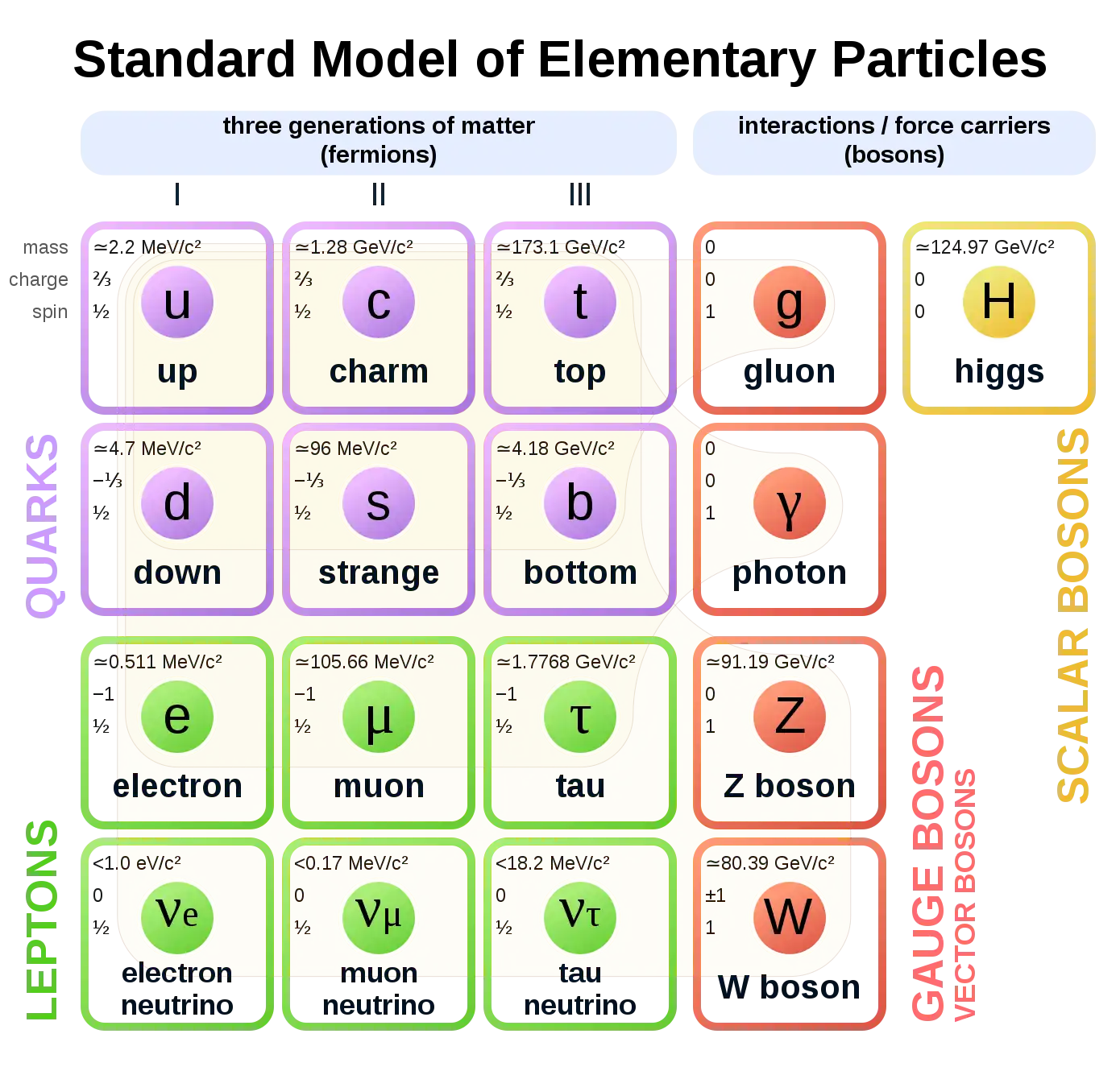 The standard model is usually represented by the following diagram:
