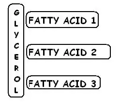 The fats and oils animals eat in their diets are called triglycerides or neutral fats. The building blocks of triglycerides are 3 fatty acids attached to a backbone of glycerol (glycerine). When fats are eaten the digestive enzymes break down the molecules into separate fatty acids and glycerol again.