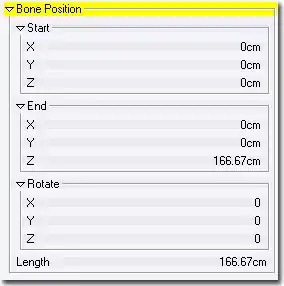 The Length values sets how long the Bone is. Adjusting this value will change the values in the End menu.