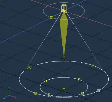 The Cone Angle is a value that is applicable only to a Kleig Light. This value sets the angle at which light is emitted from the Light.