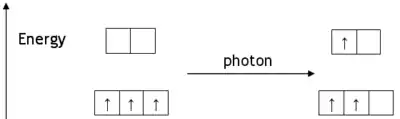 causes changes in the energy of the molecules’ electrons. The electrons change from a ‘ground state’ to an ‘excited state’.