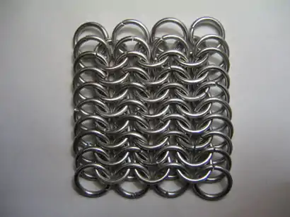 - From now on you build every row like you build row two. Every ring goes through two adjacent rings from the row above and rings in the same row are not linked. Take care to check that all rings of a finished row are flipped in the same direction before you start the next row. The sheet of mail needs to look regular, If any part of it looks twisted or the sheet bends somewhere a ring was flipped or twisted the wrong way. This takes a bit of practice but after a few rows you'll be able to do it pretty fast.