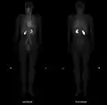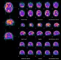 - Positron Emission Tomography (PET) also produces images of slices through the body;