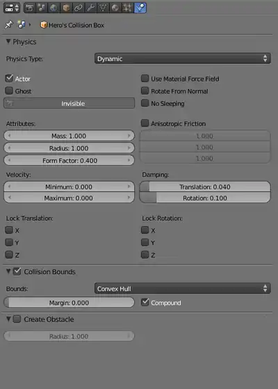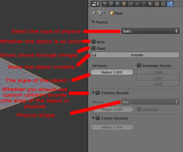 Objects in the Blender Game Engine will require physics settings. Why? The physics controls what happens when two objects meet, whether objects fall and if this object is a certain shape.
