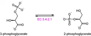 Step 8: Phosphate transfer from 3rd carbon to 2nd carbon of 3-Phosphoglycerate catalysed by phosphoglycerate mutase: