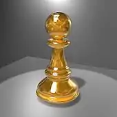 - The Amber pawn is made using Subdivisions instead of SPIN command. It stands in the same scene but there is more lights and background curved plane. For this material I've used reflection mapping F5 > World buttons; F5 > Material buttons > Mirror Trans and Ramp Shader. Do you know how many lights are used for the Amber pawn?
