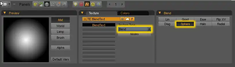 Create a new material and name it something intelligent. Create a new texture for this material, change the texture type to Blend, and then in the texture properties, change the blend shape to "Sphere".
