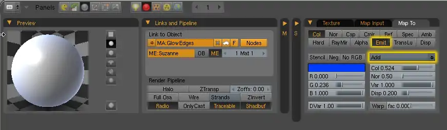 Finally go the "MapTop" tab, and depress the Emit button and set the Texture Blending Mode to "Add":