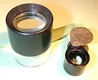 Nearly all cells are too small to be seen with the unaided eye. As always there are some exceptions, but generally magnification is required to detect a cellular structure. In plants, a good hand-lens or loupe (see photo at right) will sometimes suffice, but in working with cells or observing how cells are organized to form tissues and structures, a high power microscope is used.