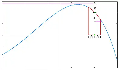 Of course, we know the answer should be , but now we can prove this rigorously. Given some , we know there's a such that, for any with , (since the definition of limit says "for any ", so it must be true for as well). Similarly, there's a such that, for any with , . We can set to be the lesser of and . Then, for any with , , as required.