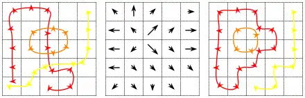 In the image below, the multi-path in the left panel is converted to the vector field in the center panel by computing the total displacement in each cell and averaging over the volume. The volume of each cell should be infinitesimal. The multi-path in the right panel corresponds to the same vector field, and is in a more canonical form where the individual paths do not cross each other.