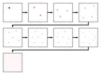The image below shows how a continuous scalar field can be generated as a collection of points. Consider position and the infinitesimal volume with volume . The total point weight contained by is . This weight of is then split up over an arbitrarily large number of points that are scattered over the volume .