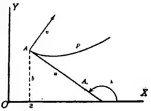 If we draw a small circle around the point , then on its periphery we can easily determine the point , in which it is cut by one of the curves in question. For let be the radius of the small circle, so that