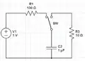 Capacitor charging and discharging circuit separated by a switch