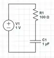 A capacitor looks like an open when fully charged, so the full source voltage is going to be across the capacitor. So in this case the initial voltage across the capacitor is 1 volt.