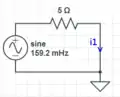 Current through 1 ohm resistor, once moved into the time domain (from the above numbers) is: