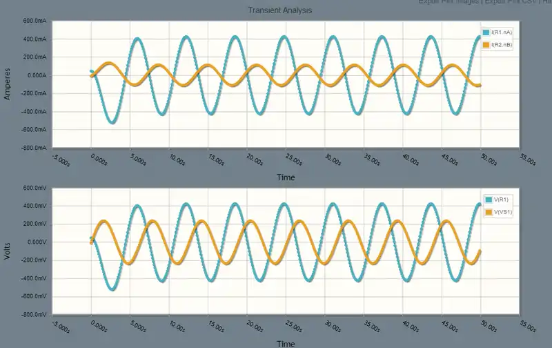 To compare with the results above, need to translate the current and voltage through the resistor into the time domain.