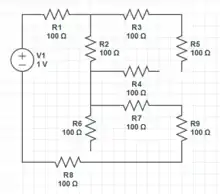 Two wires have been removed from this circuit. This has left resistors 2,3,7,5 and 8 dangling.