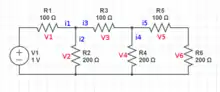 We are being told that the resistor and voltage source have values, but to work towards a symbolic solution. But rather than the resistors all being a separate symbol, they are all have a value of R or 2R. So in terms of symbolic solutions, the goal is to use and to represent these "knowns."