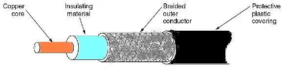 Coaxial cable is an electrical cable consisting of a round conducting wire, surrounded by an insulation spacer, surrounded by a foil, surrounded by a cylindrical conducting sheath, usually surrounded by a final insulating layer. It is used as a high-frequency transmission line to carry a high-frequency or broadband signal. Sometimes DC power (called bias) is added to the signal to supply the equipment at the other end, as in direct broadcast satellite receivers. Because the electromagnetic field carrying the signal exists (ideally) only in the space between the inner and outer conductors, it cannot interfere with or suffer interference from external electromagnetic fields.A coaxial cable's self-shielding property is vital to successful use in broadband carrier systems, undersea cable systems, radio and TV antenna feeders, and community antenna television (CATV) applications.