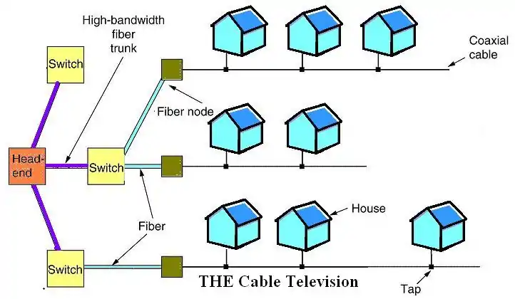 HFC:- Hybrid fiber-coaxial systems were provisioned using only coaxial cable. Modern systems use fiber transport from the headend to an optical node located in the neighborhood to reduce system noise. Coaxial cable runs from the node to the subscriber. The fiber plant is generally a star configuration with all optical node fibers terminating at a headend. The coaxial cable part of the system is generally a trunk-and-branch configuration.