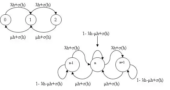 This last equation is the probability that a system leaves a state in the next increment of time h. This can be expressed in a Taylor series: