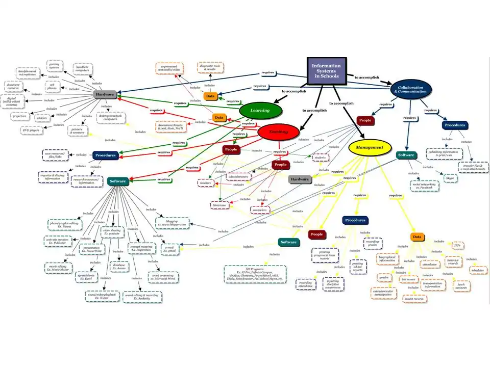 Once one has identified the hardware, software, data, procedures, and people it takes to get an IS in place in schools, it is important to understand how to share the information with all educational stakeholders so that it functions effectively. With today's ever-changing technology, teaching and learning need to keep up. More and more schools are meeting with success as they attempt online instruction or have an online element added to a traditional "brick and mortar" approach in classroom learning.