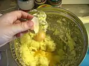- Beat in the vanilla and eggs, one at a time, ensuring the batter is well mixed after each egg.