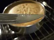 If the knife is dirty - the mixture is still wet - put it back in! (This was after about 15 minutes, it takes a lot longer)