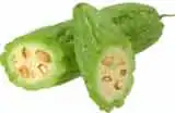 Bitter melon is also known as foo qua, balsam pear, and bitter gourd. It is actually a member of the squash family and resembles a cucumber with bumpy skin. When first picked, a bitter melon is yellow-green, but as it ripens, it turns to a yellow-orange color. The inside of the melon is filled with fibrous seeds. Bitter melon is used mostly in Asian and Indian cooking. Bitter melon plants are considered an invasive weed in Florida.