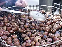 Roasting chestnuts does not involve peeling. The roasted fruit provides a coffee substitute.