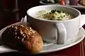 Scotland | Thick soup made of smoked haddock, potatoes and onions. An authentic cullen skink will use finnan haddie, but it may be prepared with any other undyed smoked haddock. The soup is often served as a starter at formal Scottish dinners. It has been described as "smokier and more assertive than American chowder and heartier than classical French bisque".[2] |
