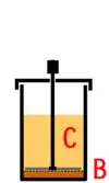 ![]() Figure 1. French press with coffee brewing in the water (A) | ![]() Figure 2. With the plunger down, the grind (B) is kept away from the brewed coffee (C) |