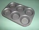 A muffin pan is similar to a cupcake pan, but with larger holes. It is a tray intended for oven use, with shallow cup-like depressions (holes) about 4 inches (100 mm) in diameter and 1.5 inches (38 mm) deep.