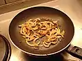 8. frying the onions in the meat juices
