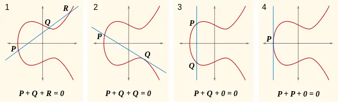 Because elliptic curves are mathematical functions, we can use the tools of high-school algebra and elementary calculus to derive formulas for and . For , for formula is: