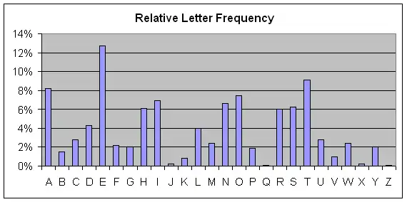 Frequency analysis is based on the fact that certain letters, and combinations of letters, appear with characteristic frequency in essentially all texts in a particular language. For instance, in the English language E is very common, while X is not. Likewise, ST, NG, TH, and QU are common combinations, while XT, NZ, and QJ are exceedingly uncommon, or "impossible". Given our example of all E's turning into X's, a cyphertext message containing lots of X's already seems to suggest one pair in the substitution mapping.
