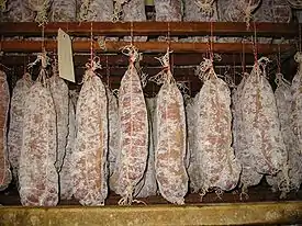 In the first century AD, Strabo recorded the import of salted meat from Gaul[2] and the Romans may have been the first to regulate the trade of charcuterie as they wrote laws regulating the proper production of pork joints, but the French have also had some influence. In 15th-century France, local guilds regulated tradesmen in the food production industry in each city. The guilds that produced charcuterie were those of the charcutiers. The members of this guild produced a traditional range of cooked or salted and dried meats, which varied, sometimes distinctively, from region to region. The only "raw" meat the charcutiers were allowed to sell was unrendered lard. The charcutier prepared numerous items, including pâtés, rillettes, sausages, bacon, trotters, and head cheese (brawn). These preservation methods ensured the meats would have longer shelf lives.[1]. Charcuterie became symbolic then to lower status peasantry.