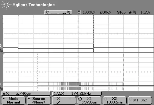 With such setup, you can achieve jitter lessen than 10 µs.