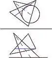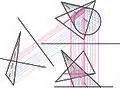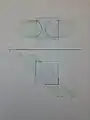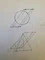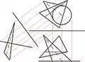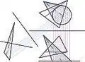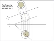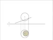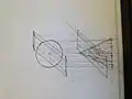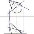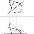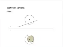 Using this information, we can construct the corresponding section of the sphere in the other view. The points where the line intersects this section can be transferred back onto the line to find the piercing points of the line and the sphere. We can project these back to the first view.(Fig2.3)