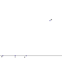 1. First create point K' with CK' being the same distance as CK (transverse axis).