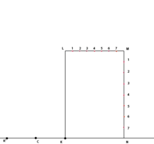2. Construct rectangle KLMN. Then divide the top side and right side into equal parts.