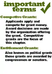 The focus of this chapter will be on competitive grants. Competitive grants are typically decided based on how well the applicants project design matches with the purpose of the grant. The grant will often explain in detail exactly how an application will be scored (and ultimately awarded) based on points for each criteria they are looking for.[1]