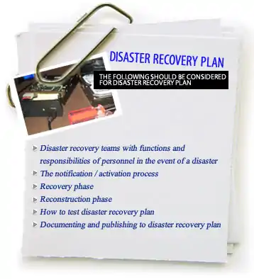 It is important that school districts prepare for possible emergency situations, in order to minimize disruptions to daily activities in schools. They should consider what type of back-up and preventive strategies would be appropriate for each aspect of their activities. The back-up and restoring can be very expensive and complex processes that will depend on specific systems and how quickly we need to restore. Naturally, the technology director needs have a written plan that outlines recurring backup and recovery procedures from both natural and man-made disasters.[4] An assessment all the business applications should be performed in order to understand the risks and include them in the disaster recovery plan. The following graphic shows some of the areas that are covered in the disaster recovery plan for a school district.